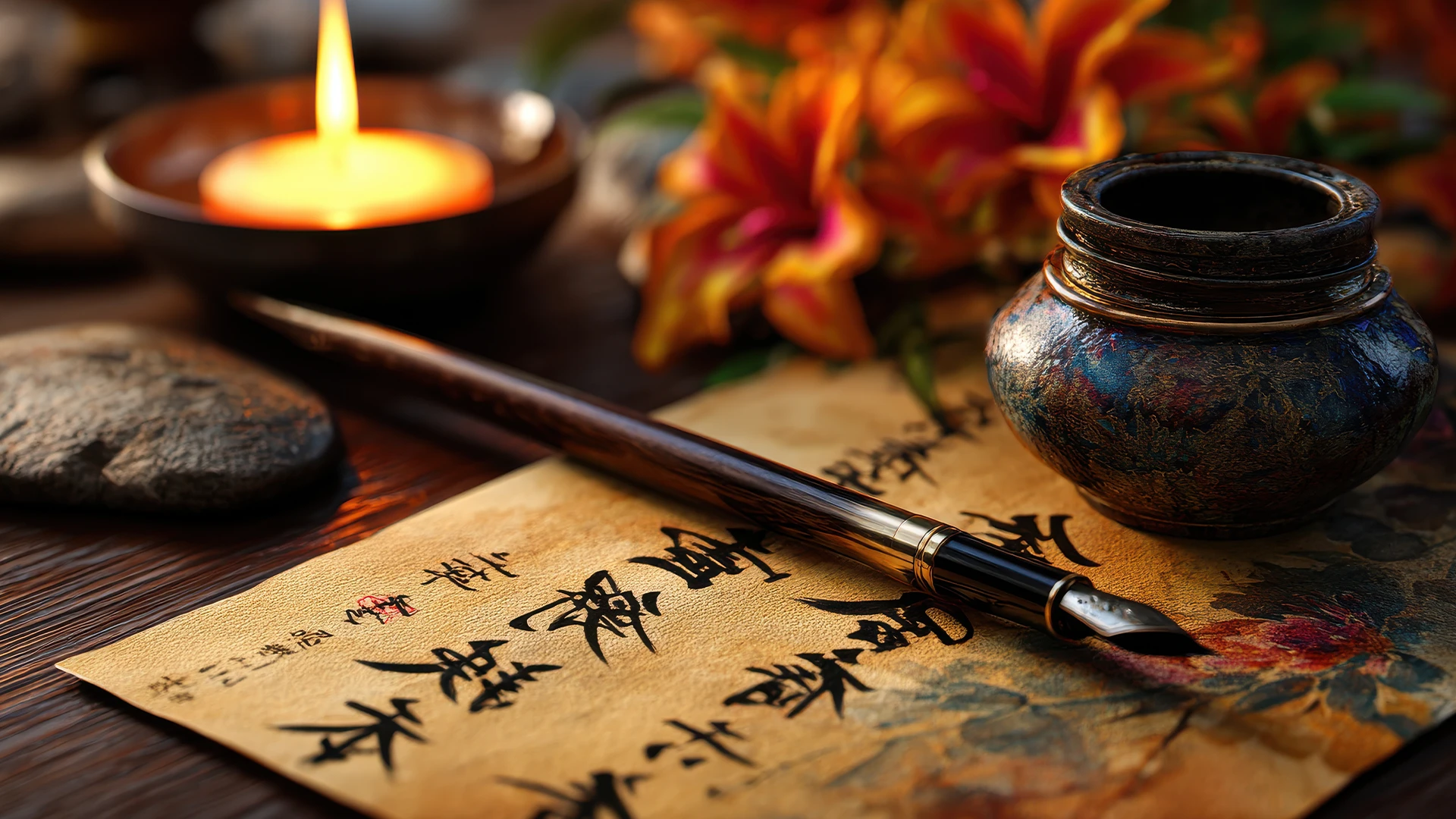 Maîtriser le mouvement du pinceau et le flux de l’encre permet de transformer chaque lettre en une œuvre expressive.